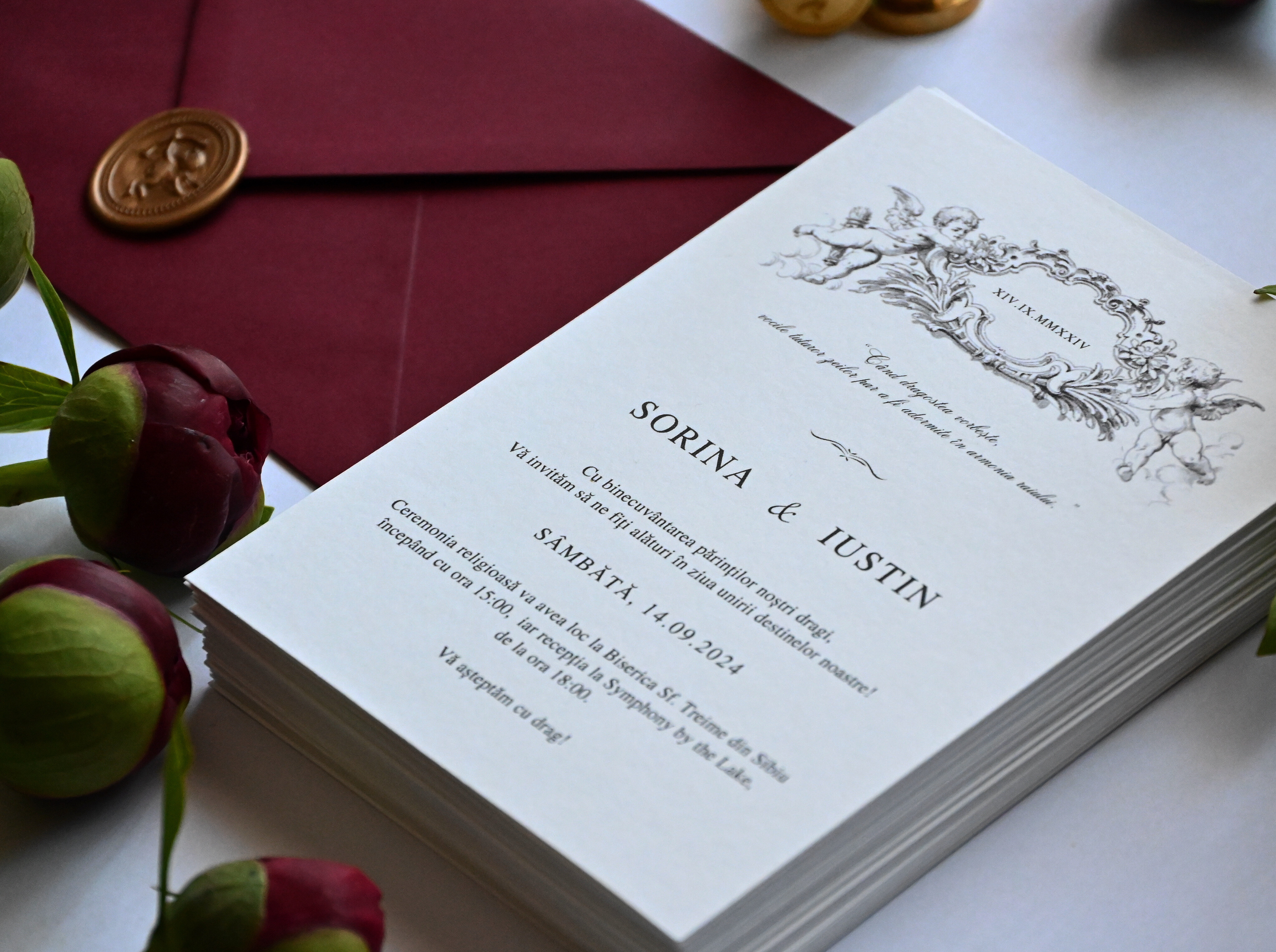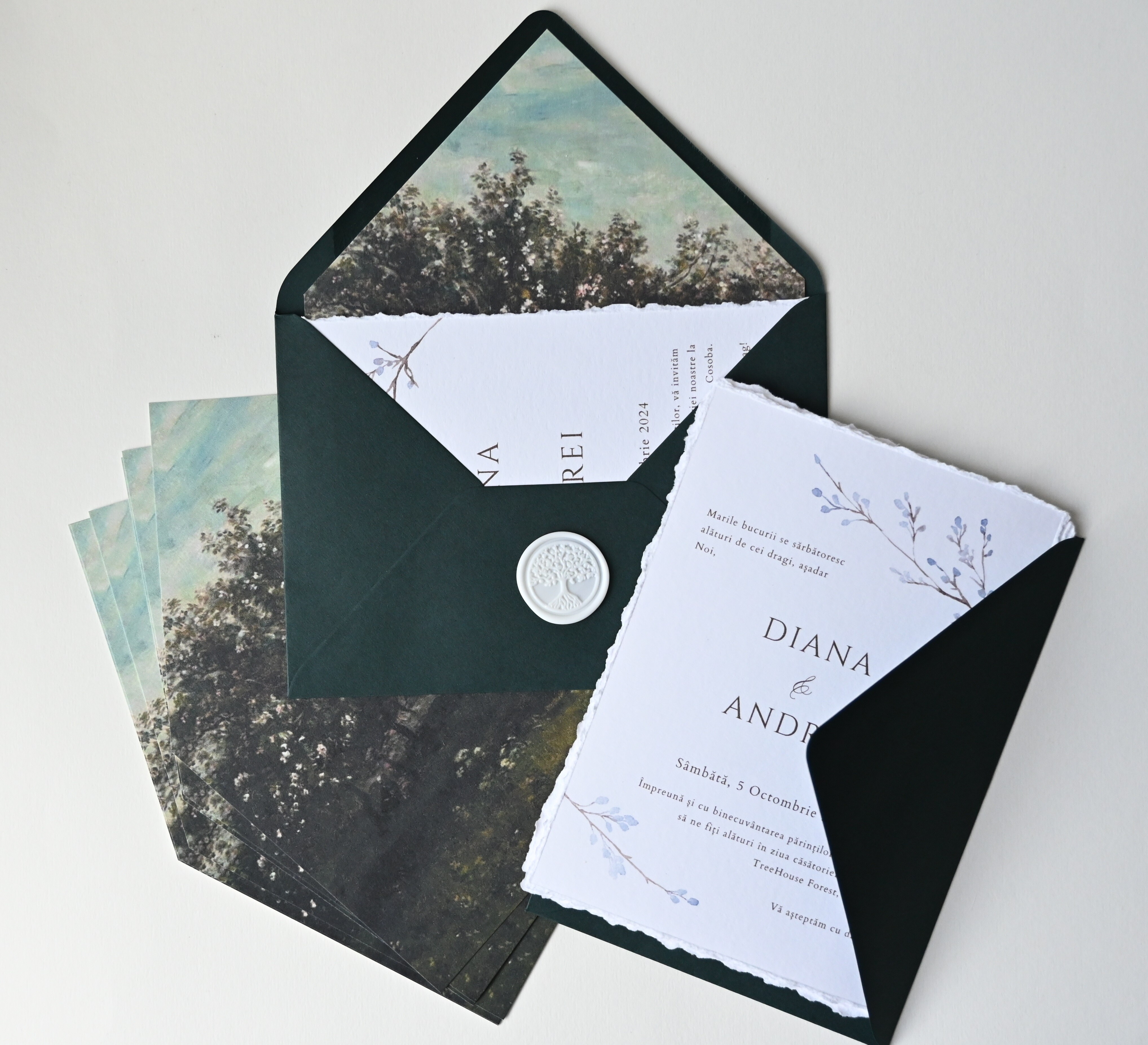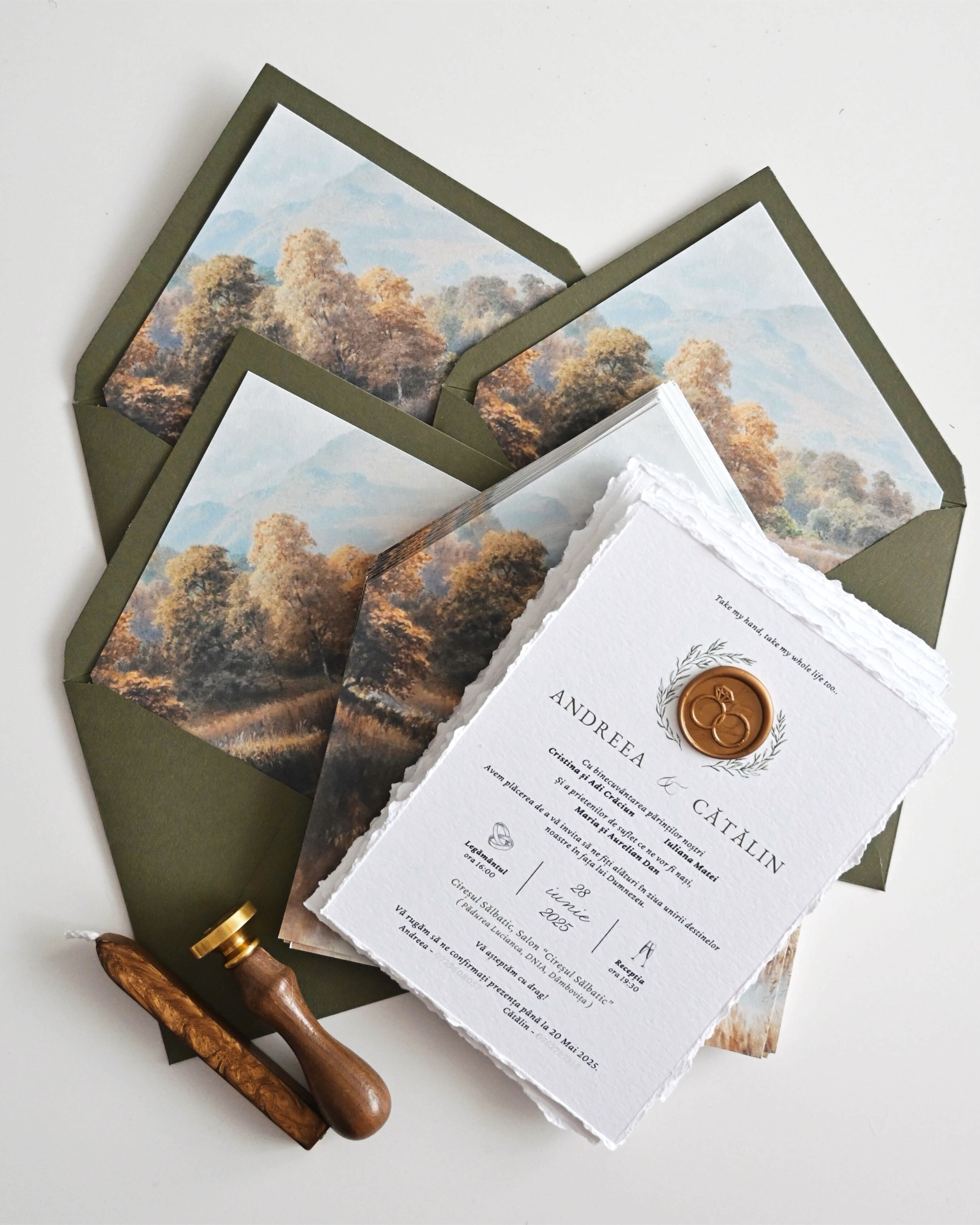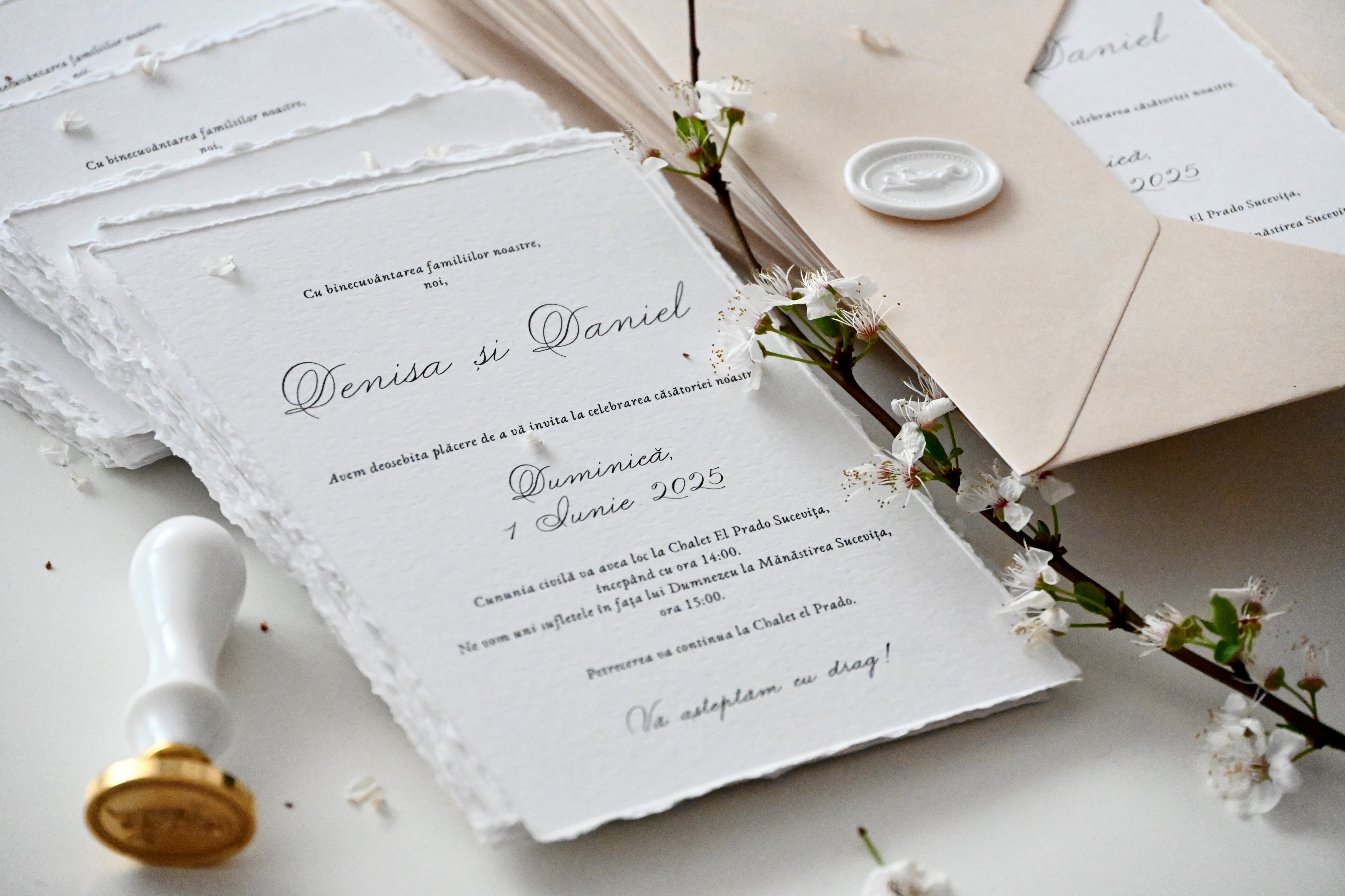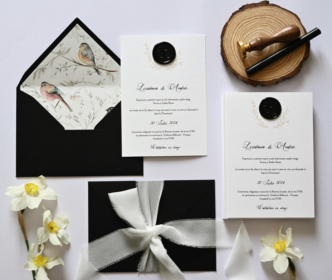 Invitații realizate din hârtie texturată